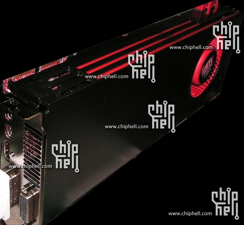 Il sistema di raffreddamento potrebbe non essere quello definitivo e mancano ancora le specifiche tecniche dettagliate dell´architettura, ma dalla foto ricaviamo una caratteristica molto interessante: la scheda dispone di 5 uscite video: 2 DVI, 2 mini-DisplayPort e 1 HDMI. Questo lascia ipotizzare una gestione massima di display in contemporanea superiore a quella della HD 5870, che ricordiamo nella versione base (non Eyefinity 6) dispone di 2xDVI, 1xDP e 1xHDMI e può pilotare al massimo 3 monitor in contemporanea.