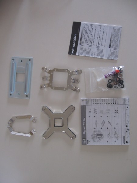 La confezione è completa per l’installazione su qualsiasi chipset, dotata di adattatori al nuovo socket LGA 1366 , relativa pasta termica Cooler Master, anche le istruzioni per tutti e tre i chipset (AM2, 775, e 1366); se non avete mai installato una dissipatore Cooler Master prima, assicuratevi di leggere il manuale.