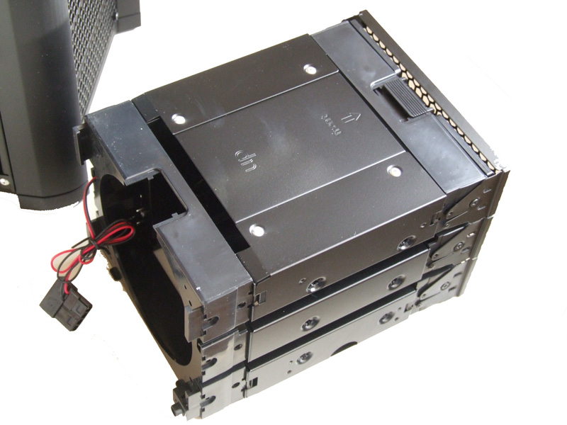 Il frontale secondo noi è la parte più riuscita e maggiormente migliorara rispetto al suo predecessore. Gli spigoli frontali ora si raccordano perfettamente con il tetto, la finitura dei materiali da una sensazione di maggior cura sia nella scelta dei materiali sia nel loro assemblaggio. Come per il vecchio modello anche qui troviamo i cassetti estraibili (tre) più uno fisso per un totale di 12 bay da 5,12 per installare indifferentemente unità ottiche o dischi rigidi grazie agli adattatori da 3,14. In questa rivisitazione sono stati apportati importanti miglioramenti, uno su tutti è la presenza di una cornice porta filtro contro la polvere estraibile e lavabile. All'interno di ogni cassetto troviamo una ventola da 120x120mm con un potenziometro per modificarne la velocità sulla parte anteriore nell'angolo in basso a destra di ogni cassetto.