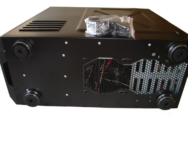 Nella parte inferiore del cabinet troviamo quattro solidi e robusti piedini di appoggio in cui è presente anche una parte di gomma, che oltre a non rovinare i mobili su cui è posizionato il case, servono anche per smorzare le vibrazioni; si possono inoltre sostituire con delle comodissime rotelle che abbiamo in dotazione nel bundle.