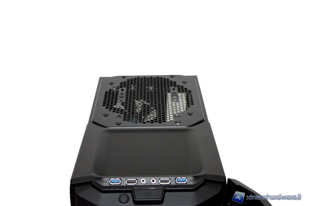 Il top del case è studiato davvero bene, a ridosso delle porte USB è stata infatti realizzato uno scomparto "porta tutto" davvero utile, sia per collegare HDD esterni, microfono cuffie, sia per appoggiare cd, chiavi...