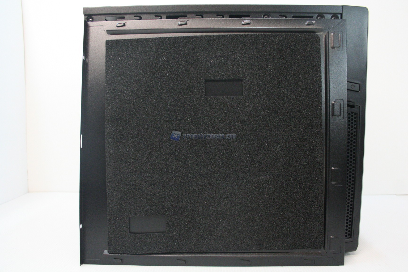 Lo spessore è basso ma la durevolezza notevole. La presenza del fonoassorbente è certamente un valore aggiunto, non di poco conto per un sistema simile. Lo scorrimento orizzontale della paratia sinistra è eccellente, quello della paratia destra invece, date le tolleranze ristrette al minimo, sarà leggermente problematico. Consigliamo di chiudere la paratia con il case poggiato lateralmente. Nonostante ciò però non sarà presente l’odiosa deformazione posteriore.
