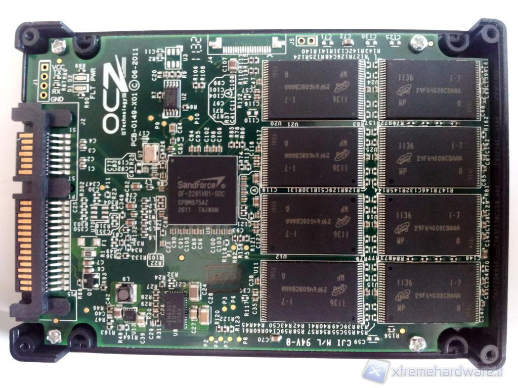 Le celle di memoria NAND Flash presenti sul PCB del drive che andremo a recensire sono 8, il loro processo produttivo è a 25nm ed in totale riescono a fornire 64GB di capacità (8GB x 8 = 64GB). Come già accennato in precedenza solo 32GB sono disponibili in quanto gli altri 32 sono dedicati all' Overprovisioning, ovvero lo spazio aggiuntivo dedicato per il rimpiazzo di una cella morta. Questa particolarità diventa di fondamentale importanza in un drive dedicato al caching, in cui i frequenti accessi in scrittura possono portare ad un deterioramento nel tempo dell’SSD. Ciò è particolarmente evidente nel Synapse dal momento che le celle utilizzate, a 25nm, sono meno longeve di quelle a 34nm, utilizzate ad esempio da Intel per i suoi modelli di SSD destinati al caching. Lo spazio dimezzato serve quindi a garantire una durata di vita paragonabile agli SSD con tecnologia a 34nm.Così come tutti gli altri SSD di ultima generazione anche l'OCZ Synapse supporta la funzione TRIM di Windows 7 e quindi il gap prestazionale che i primi modelli di SSD riscontravano con il passare del tempo durante le operazioni in scrittura e in lettura è stato quasi azzerato.