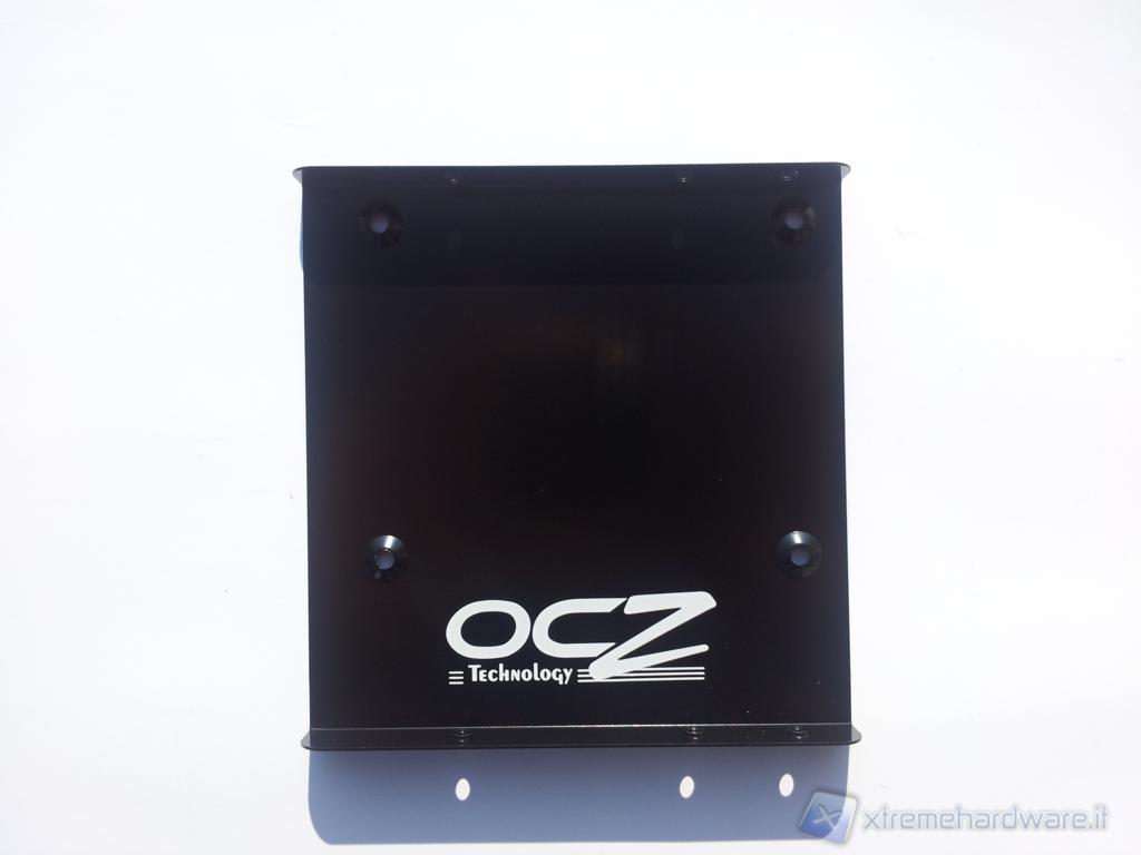 Nella parte anteriore sono presenti il logo OCZ, le caratteristiche tecniche principali, l'adesivo che indica la capacità del drive; centralmente spiccano il nome del drive e un'immagine dell’SSD stesso, realizzati con vernice lucida in rilievo su uno sfondo nero e blu. In basso a sinistra, inoltre, un riquadro ci informa che all'interno della confezione sono presenti sia l'adattatore da 3,5" ,sia la licenza per il software Dataplex.