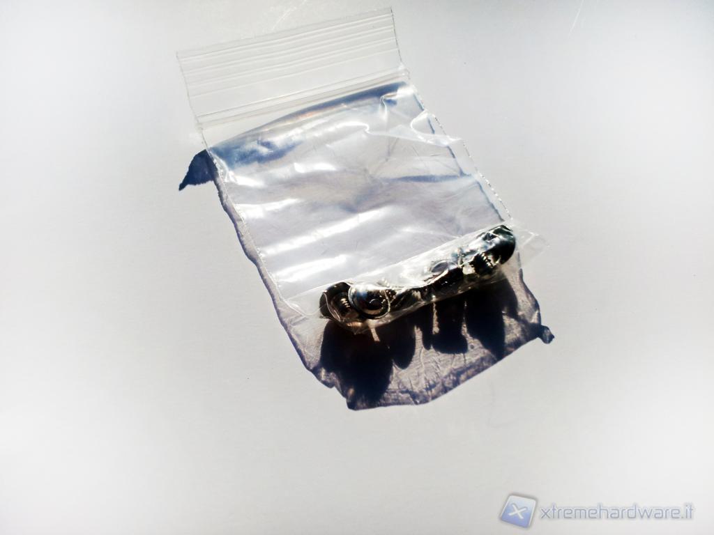Per prima cosa troviamo l'adattatore da 3,5" identico a quelli utilizzati per gli altri SSD della casa produttrice e dalla forma standard. Aperta la confezione troviamo le viti per il montaggio ed il Synpase racchiuso in una busta antistatica.