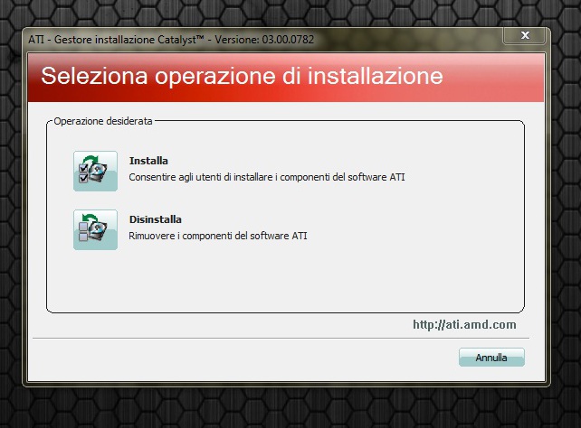 4) Lanciate l'eseguibile dei driver che volete installare. Selezionate la voce "Disinstalla" e rimuovete completamente i driver. Se viene richiesto, riavviate il Pc.