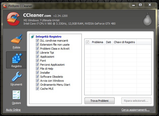 9) Sempre in modalità provvisoria, lanciate il programma CCleaner e rifate la procedura eseguita al punto 6.
