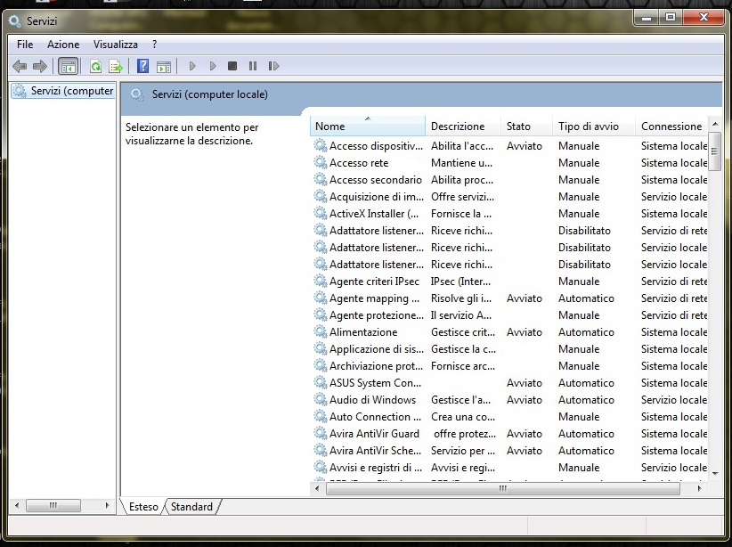 Cliccate la voce "services" e si aprirà la seguente finesta: