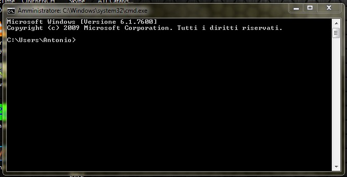 Cliccate la voce "cmd" (oppure andate su "Esegui", digitate cmd e cliccate su OK) e si aprirà la seguente finesta :